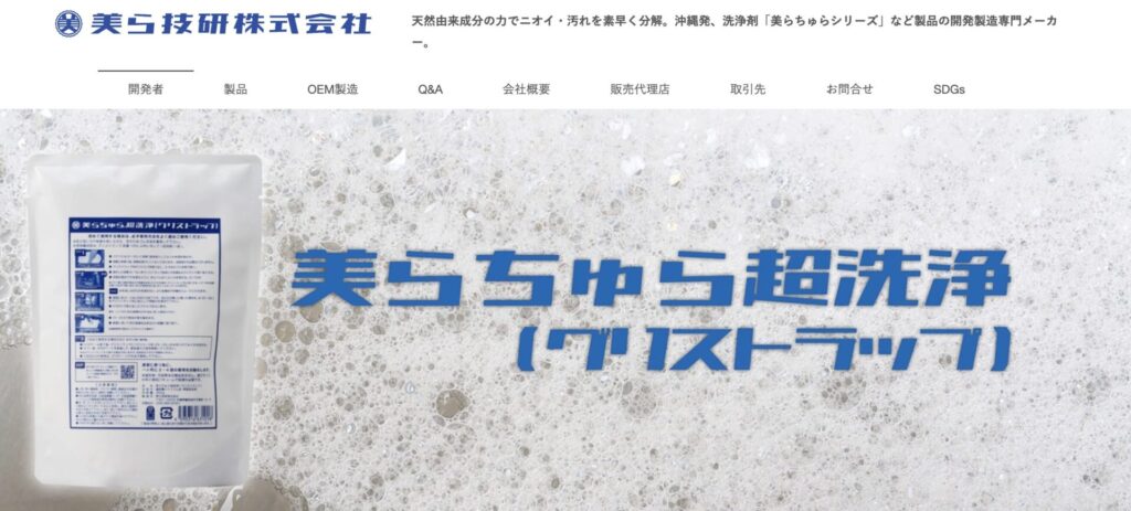 ■ 美らちゅら超洗浄(沖縄発)|酵素の力で油を分解するグリストラップ専用洗剤