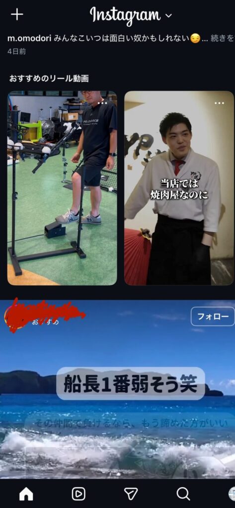 ↑上部の「おすすめのリール動画」というところです。