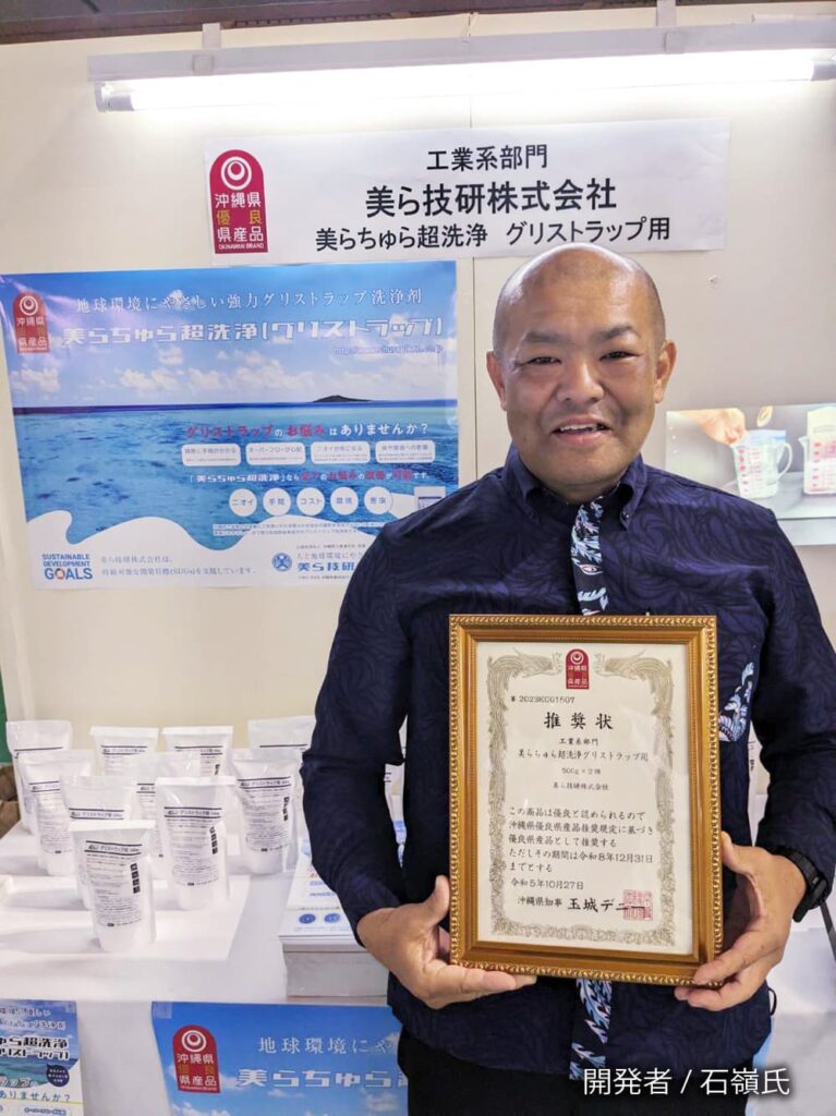 ↓沖縄県優良県産品に認定された「美らちゅら超洗浄」(環境に優しい業務用洗剤)